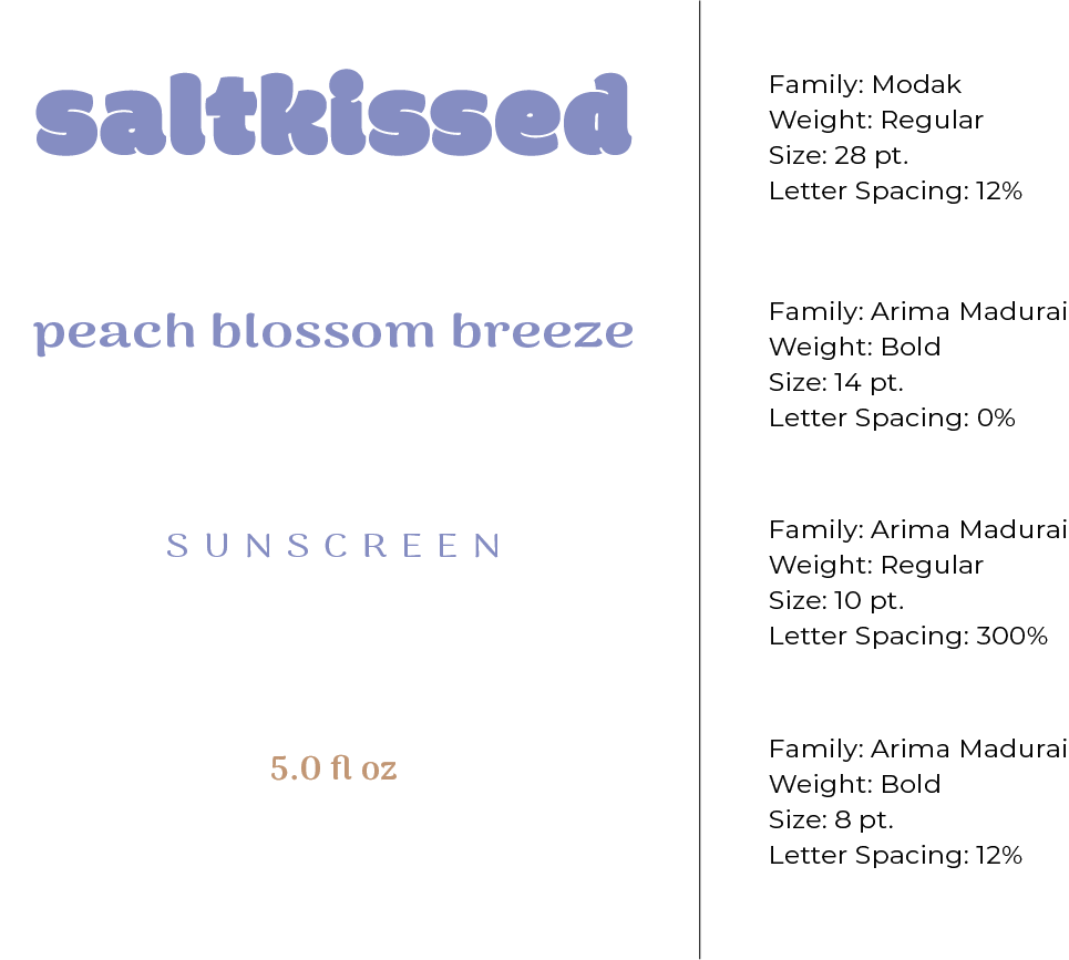 I developed Saltkissed as a conceptual sunscreen brand to practice packaging design and mockups. The idea was to combine function with lifestyle branding - creating something that feels professional and trustworthy, but also playful, bold, and connected to summer.
